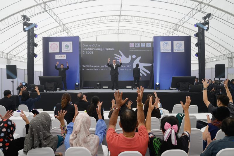 สมาคมคนหูหนวกแห่งประเทศไทย ได้รับการสนับสนุนจากกรมส่งเสริมและพัฒนาคุณภาพชีวิตคนพิการ (พก.) ดำเนินการจัดกิจกรรมงานวันภาษามือโลกและวันสัปดาห์คนหูหนวกโลก ได้ดำเนินการงานวันภาษามือโลก และงานสัปดาห์คนหูหนวกโลก ประจำปี 2568 โดยได้จัดต่อเนื่องเป็นครั้งที่ 9