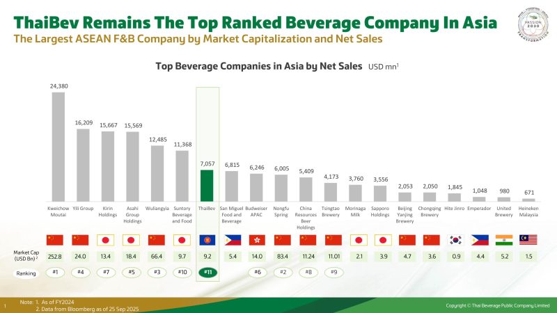 กล่าวว่า “ภาวะเศรษฐกิจทั้งในระดับโลกและระดับภูมิภาคยังคงเผชิญความท้าทายจากการเติบโตที่ชะลอตัว ความไม่แน่นอนของนโยบายการค้าระหว่างประเทศ รวมถึงการท่องเที่ยวและการบริโภคที่ยังฟื้นตัวไม่เต็มที่ ท่ามกลางภาวะเศรษฐกิจเช่นนี้ ไทยเบฟยังคงมุ่งมั่นเสริมสร้างรากฐานธุรกิจให้แข็งแกร่ง พร้อมทั้งขับเคลื่อนกลยุทธ์ภายใต้ PASSION 2030 อย่างต่อเนื่อง ด้วยความมุ่งมั่นในการเข้าถึงผู้บริโภค รวมถึงส่งเสริมศักยภาพบุคลากร และเสริมแกร่งตราสินค้าของเรา ซึ่งเราเชื่อว่ากลยุทธ์เหล่านี้จะช่วยเสริมสร้างไทยเบฟให้มีความคล่องตัว แข่งขันได้อย่างมีประสิทธิภาพ และเติบโตได้อย่างยั่งยืน ตอกย้ำความเป็น ‘ผู้นำที่มั่นคงและยั่งยืนของอาเซียน’ ในธุรกิจเครื่องดื่มและอาหาร”