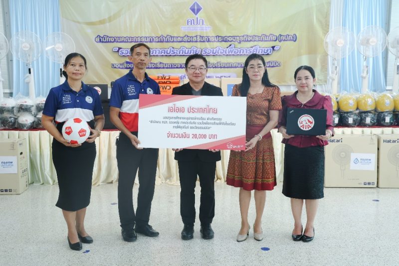 นอกจากนี้ นายสุวิรัช พงศ์เสาวภาคย์ (กลาง) ผู้อำนวยการฝ่ายกิจการภายนอก เป็นผู้แทนเอไอเอ ประเทศไทยมอบทุนการศึกษาจำนวน 20,000 บาท ลูกฟุตบอล 5 ลูก และแล็ปท็อป 10 เครื่อง โดยมีนายโชคอนันต์ นาคสงวน (ที่ 2 จากซ้าย) ผู้อำนวยการโรงเรียนเทศบาลวั