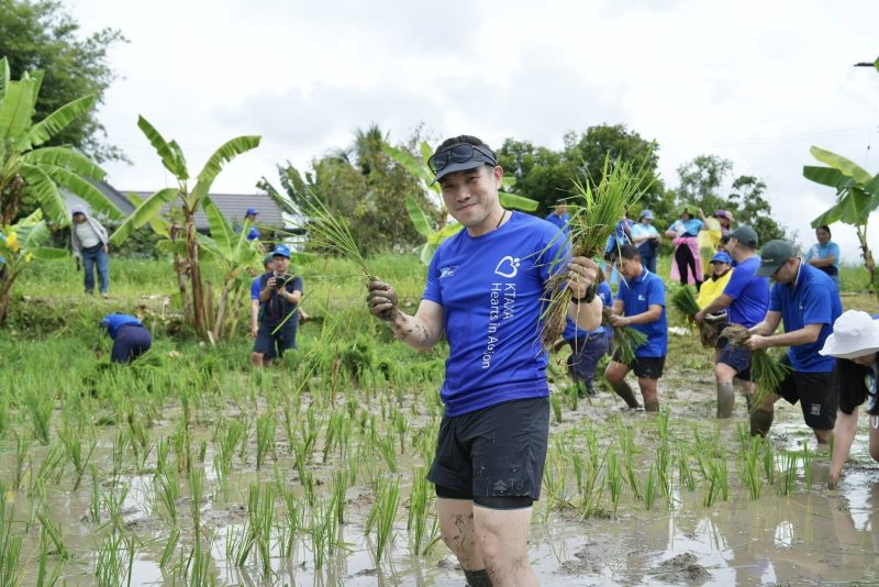 บมจ.กรุงไทย-แอกซ่า ประกันชีวิต นำโดย คุณณัฐพิสิษฐ์ ครุฑครองชัย ประธานเจ้าหน้าที่บริหาร (คนที่ 8 จากซ้าย แถวที่สาม) และ คุณบุปผาวดี โอวรารินท์ ประธานเจ้าหน้าที่บริหาร ฝ่ายการตลาด (คนที่ 9 จากซ้าย แถวที่สาม) นำทีมคณะผู้บริหาร พนักงาน และฝ่ายขายจิตอาสา ร่วมเดินหน้าสร้างความยั่งยืนให้กับชุมชน ผ่านกิจกรรมปลูกข้าว พร้อมทั้งมอบอุปกรณ์ไฟแสงสว่างระบบโซลาร์เซลล์และพันธุ์ปลานานาชนิด ภายใต้โครงการ “แผ่นดินทองเพื่อน้องๆ บ้านนานา ปีที่ 18” ณ. มูลนิธิพันธกิจเด็กและชุมชน บ้านนานา อ. แม่สาย จ. เชียงราย ซึ่งเป็นโครงการที่บริษัทฯ จัดทำอย่างต่อเนื่อง และช่วยสร้างรายได้ที่ยั่งยืน โดยสามารถช่วยสร้างผลผลิตข้าวให้แก่ชุมชนเพิ่มขึ้น จาก 2,000 ก.ก.ต่อปี เป็นมากกว่า 7,000 ก.ก.ต่อปี