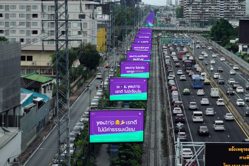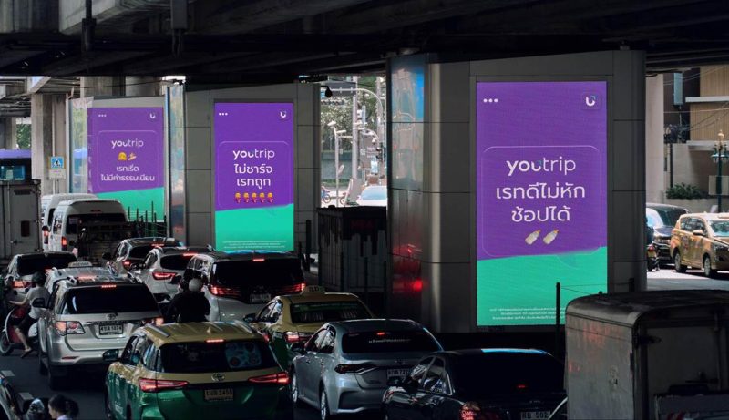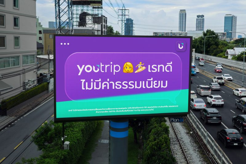 สร้าง Talk of the Town นอกจาก “ยึด BTS” แล้ว YouTrip ยังสร้างสีสันบนบิลบอร์ดทั่วกรุงด้วย “Emoji” ที่เหมือนจะบอกใบ้ให้คนทายความหมายเอง สะท้อนว่าการเดินทางไม่จำเป็นต้องถูกจำกัด อยู่ที่ว่าเรากล้าออกเดินทางแค่ไหน กิมมิคนี้สะท้อนภาพลักษณ์แบรนด์ที่สดใหม่ เข้าถึงง่าย มีเอกลักษณ์ และรับฟัง พร้อมยกระดับประสบการณ์นักเดินทางให้คุ้มค่าด้วยสิทธิประโยชน์มากมาย ทั้งส่วนลดโรงแรมและตั๋วเครื่องบินจาก Agoda และ Trip.com, ดีลพิเศษจาก Klook, สิทธิพิเศษสำหรับนักช้อป Don Quijote ที่ญี่ปุ่น ไปจนถึงแพ็กเกจประกันการเดินทางครอบคลุมที่สุด