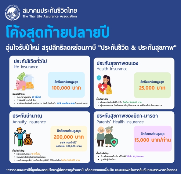 “ปลายปีนี้จึงเป็นโอกาสสำคัญที่ไม่ใช่แค่การวางแผนภาษี แต่เป็นการหันกลับมาทบทวนและสร้างหลักประกันที่มั่นคง เพื่อก้าวเข้าสู่ปีใหม่อย่างมั่นใจ อุ่นใจ และมีคุณภาพชีวิตที่ดี” นายกสมาคมประกันชีวิตไทย กล่าวเพิ่มเติม