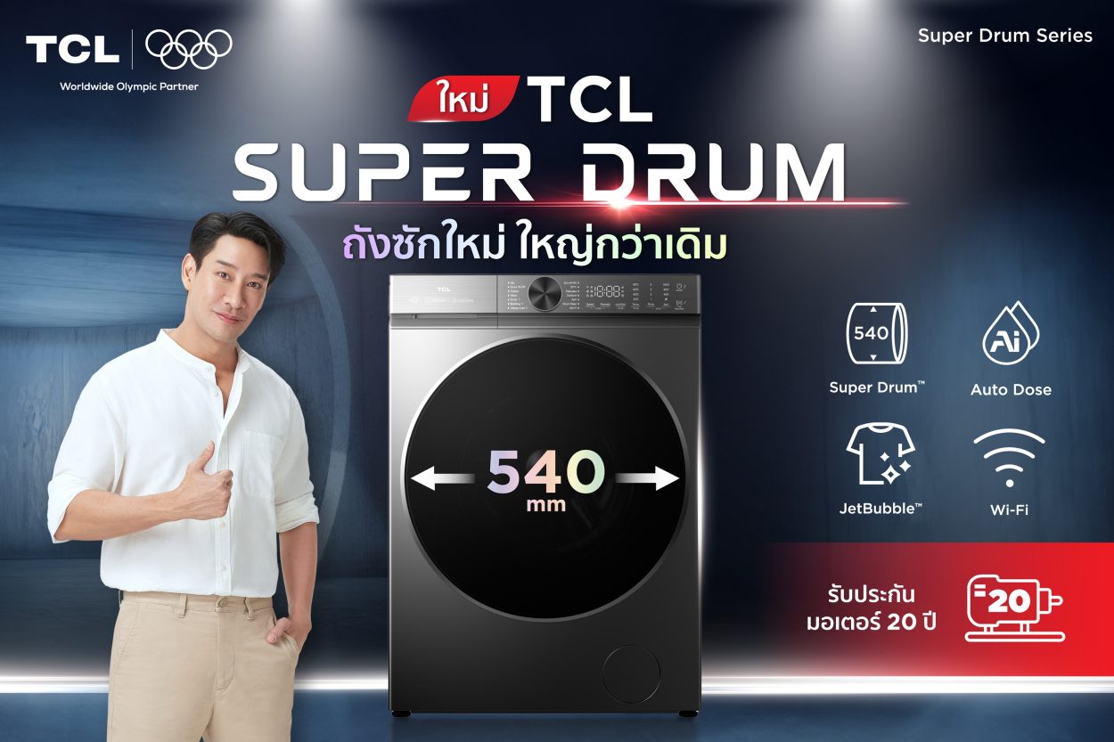 TCL เปิดมิติใหม่ในตลาดเครื่องซักผ้า เปิดตัวเครื่องซักผ้า Super Drum Series รุ่น WT12XCWDG นวัตกรรมสุดล้ำ ถังซักขนาดใหญ่ถึง 540 มม. และฟังก์ชันอัจฉริยะอย่างครบครัน เช่น Super Smart – เชื่อมต่อ Wi-Fi ควบคุมการใช้งานด้วย Application TCL HOME สามารถคอนโทรลเชื่อมต่อได้ทุกที่ทุกเวลา Super Clean – ดูแลเหนือระดับ ซักสะอาดหมดจด Super Care – ใส่ใจสุขภาพ ปลอดภัยต่อทุกคนในครอบครัว ครบจบทั้งซักและอบในเครื่องเดียวตอบโจทย์ทุกไลฟ์สไตล์ของผู้บริโภคยุคใหม่ เตรียมจัดแคมเปญสุดยิ่งใหญ่ รวมของขวัญสุดพิเศษกว่า 6,000,000 บาท ปลายเดือนตุลาคมนี้