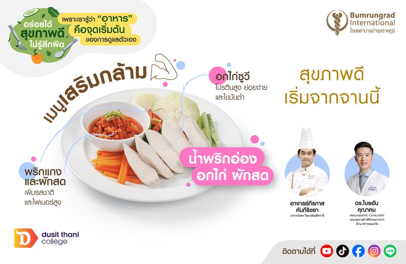 โรงพยาบาลบำรุงราษฎร์ เปิดตัวแคมเปญ “Fit Thai: หลากหลายเมนูเพื่อสุขภาพ” อย่างเป็นทางการ ซึ่งถือเป็นความร่วมมือครั้งสำคัญระหว่างทีมแพทย์เฉพาะทาง นักกำหนดอาหาร จากโรงพยาบาลบำรุงราษฎร์ และ เชฟชั้นนำ จากวิทยาลัยดุสิตธานี เพื่อยกระดับอาหารไทยให้เป็นเมนูสุขภาพที่ผสาน “รสชาติ” อันเป็นเอกลักษณ์เข้ากับ “ประโยชน์” ต่อสุขภาพอย่างลงตัว ตอบโจทย์ผู้ที่ใส่ใจสุขภาพ ผู้ป่วย และบุคคลทั่วไปที่ต้องการเริ่มต้นดูแลตัวเองผ่านอาหารการกิน โดยมุ่งเน้นการส่งเสริมชีวิตที่ยืนยาว (Longevity) และการป้องกันโรคต่าง ๆ อาทิ โรคหัวใจ โรคระบบทางเดินอาหาร สุขภาพใจ รวมถึงการเสริมสร้างภูมิคุ้มกัน ซึ่งเป็นปัญหาด้านสุขภาพของคนไทยส่วนใหญ่และมีแนวโน้มเพิ่มมากขึ้นในปัจจุบัน