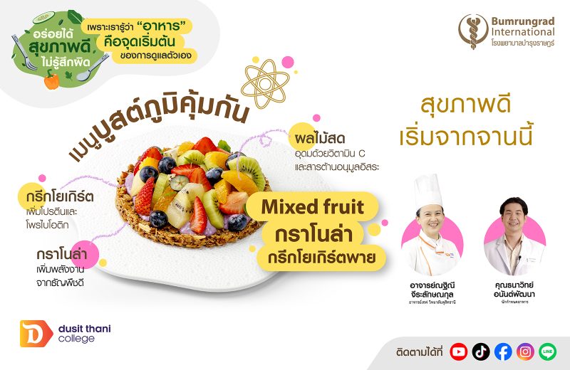 · กราโนล่า เพิ่มพลังงานจากธัญพืชดี · ผลไม้สด อุดมด้วยวิตามินซีและสารต้านอนุมูลอิสระ |