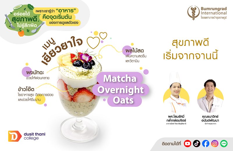 | อาหารฟื้นฟูจิตใจ | Matcha Overnight Oats | · ผลไม้สด เพิ่มความสดชื่นและวิตามิน