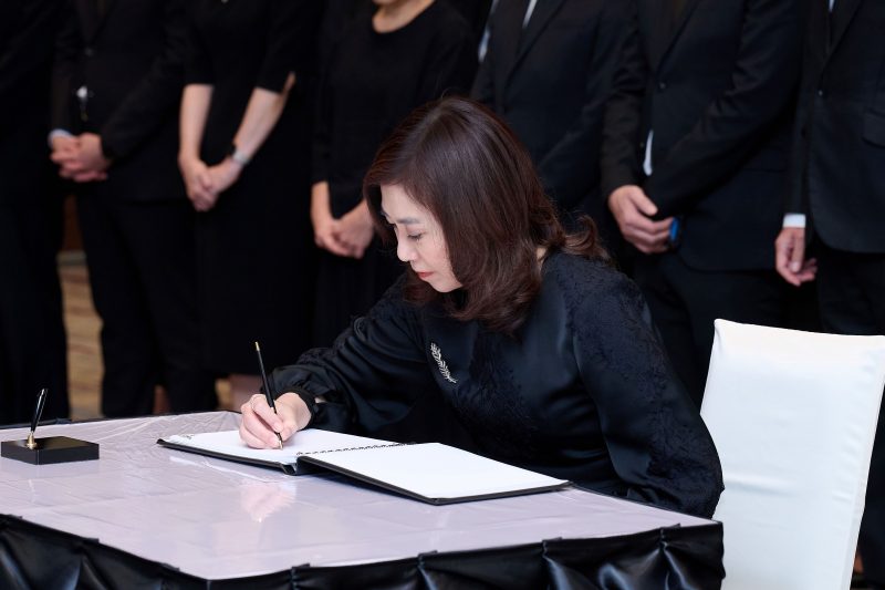 ภายในพิธี พลเอกวินัย ภัททิยกุล ประธานกรรมการ ได้กล่าวถวายความอาลัย พร้อมกันนี้ คณะกรรมการ คณะผู้บริหาร และพนักงานพร้อมใจกันยืนสงบนิ่ งเป็นเวลา 1 นาที และร่วมลงนามในสมุดถวายความอาลั ยด้วยสำนึกในพระมหากรุณาธิคุ ณอย่างหาที่สุดมิได้ โดยตลอดระยะเวลากว่า 7 ทศวรรษ สมเด็จพระนางเจ้าสิริกิติ์ พระบรมราชินีนาถ พระบรมราชชนนีพันปีหลวง ได้ทรงบำเพ็ญพระราชกรณียกิจนานั ปการ เคียงคู่พระบาทสมเด็ จพระบรมชนกาธิเบศร มหาภูมิพลอดุลยเดชมหาราช บรมนาถบพิตร โดยทรงอุทิ ศพระวรกายและพระราชหฤทัยเพื่ อประเทศชาติ และเพื่อประโยชน์สุขของพสกนิ กรของพระองค์เสมอมา พระองค์ทรงเป็นผู้มีน้ำพระทัยอ่ อนโยน เปี่ยมไปด้วยพระเมตตา และทรงมีความรัก ความห่วงใยอย่างลึกซึ้งต่อพสกนิ กร ดังที่ทรงได้รั บการถวายพระราชสมัญญา “แม่แห่งแผ่นดิน” ที่ปวงชนชาวไทยเทิดทูนเหนือเกล้ าเหนือกระหม่อมคณะกรรมการ คณะผู้บริหาร และพนักงาน บมจ.ไทยประกันชีวิต ขอตั้งจิตปณิธานที่จะน้ อมนำแนวพระราชดำริที่พระองค์ ทรงพระราชทานไว้ มาเป็นแนวทางในการดำรงชีวิต และแนวทางในการดำเนินงาน ตามรอยเบื้องพระยุคลบาท เพื่อประโยชน์ของสั งคมและประเทศชาติสืบไป