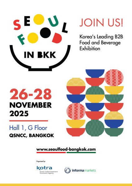 ำหรับการส่งเสริมความร่วมมือและความสัมพันธ์ระหว่างเกาหลีและไทยถือว่าเป็นพันธมิตรทีเหนียวแน่น ทั้งด้านเศรษฐกิจ สังคม และวัฒนธรรม ประเทศไทยยังเป็นจุดยุทธศาสตร์สำคัญของโลจิสติกส์และเป็นผู้นำในการบริโภคที่มีอิทธิพลต่อภูมิภาคอาเซียน ดังนั้น KOTRA มีเตรียมจัดงาน SEOUL FOOD in Bangkok 2025 ขึ้น ระหว่างวันที่ 26-28 พฤศจิกายน 2568ศูนย์การประชุมแห่งชาติสิริกิติ์ซึ่งงาน SEOUL FOOD เป็น 1 ใน 4 งานแสดงสินค้าอาหารสำหรับมืออาชีพที่ใหญ่ที่สุดของเอเชีย และไทยเป็นประเทศแรกที่ได้รับเลือกให้จัดงานนี้ขึ้นในต่างประเทศ โดยผู้เข้าร่วมงานจะได้พบกับ การจัดแสดงสินค้าที่มีการนำเสนอ ทั้งนวัตกรรมเทคโนโลยีอาหารที่ผสานแนวคิดด้านสุขภาพและความยั่งยืน การเปิดประสบการณ์ในวัฒนธรรมเกาหลีที่แท้จริง ชิมอาหารเกาหลีที่หลากหลาย พร้อมชมการสาธิตการทำอาหารจากเชฟที่ได้แรงบันดาลใจจากวัฒนธรรมเกาหลี ภายใต้แนวคิด K-Food นวัตกรรมอาหารแห่งอนาคต :  ก้าวล้ำด้วยเทคโนโลยีเพื่อสุขภาพที่ดีและความยั่งยืนของโลก (K-Food Innovation: Smart, Healthy & Sustainable)