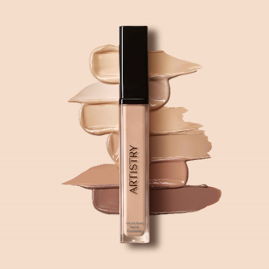 อาร์ทิสทรี ฟิวเจอร์ โกลว์ เซรั่ม คอนซีลเลอร์ (Artistry Future Glow Serum Concealer) เครื่องสำอางคอนซีลเลอร์ ที่ออกแบบมาเพื่อแก้ไขปัญหาผิวหน้าเฉพาะจุด มีเนื้อสัมผัสที่เข้มข้นกว่ารองพื้น ให้การปกปิดในบริเวณที่ต้องการอย่างเรียบเนียน ช่วยในการปกปิดจุดด่างดำ รอยแดง รอยคล้ำใต้ดวงตา มีเนื้อสัมผัสที่ละเอียดเกลี่ยง่าย กลมกลืนกับผิวแบบไม่ตกร่องระหว่างวัน ติดทนยาวนานถึง 24 ชั่วโมง* และมีส่วนผสมที่ช่วยบำรุงผิว อาทิ สารสกัดเมล็ดเชียขาวและทับทิม จากฟาร์มออร์แกนิก