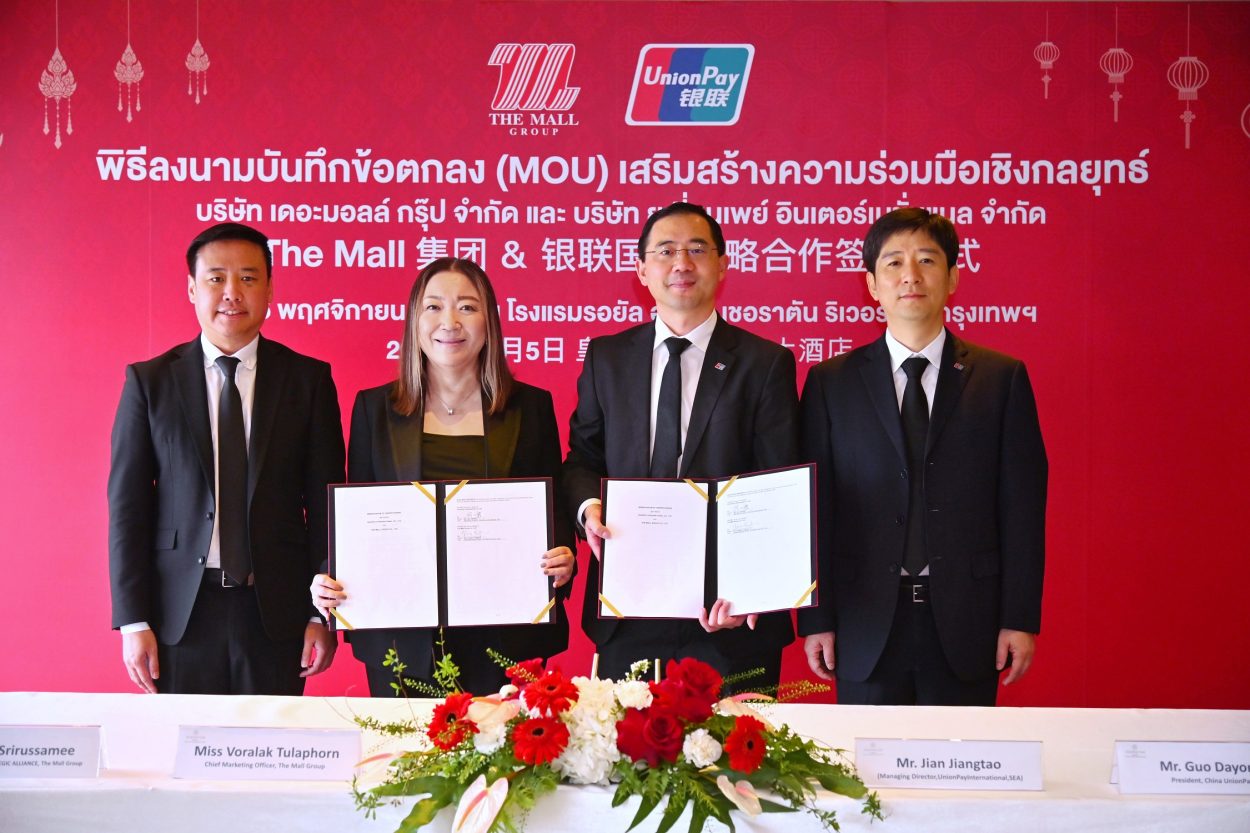 กลุ่มเดอะมอลล์ กรุ๊ป ผู้นำธุรกิจค้าปลีกและศูนย์การค้าชั้นนำของประเทศไทย ประกาศลงนามบันทึกข้อตกลงความร่วมมือเชิงกลยุทธ์กับ บริษัท ยูเนี่ยนเพย์ อินเตอร์เนชั่นแนล จำกัด (UnionPay International: UPI) ผู้นำระดับโลกด้านระบบการชำระเงิน เพื่อร่วมกันยกระดับประสบการณ์การช้อปปิ้งและการใช้จ่ายของนักท่องเที่ยว พร้อมขับเคลื่อนเศรษฐกิจการท่องเที่ยวไทยให้เติบโตอย่างยั่งยืน