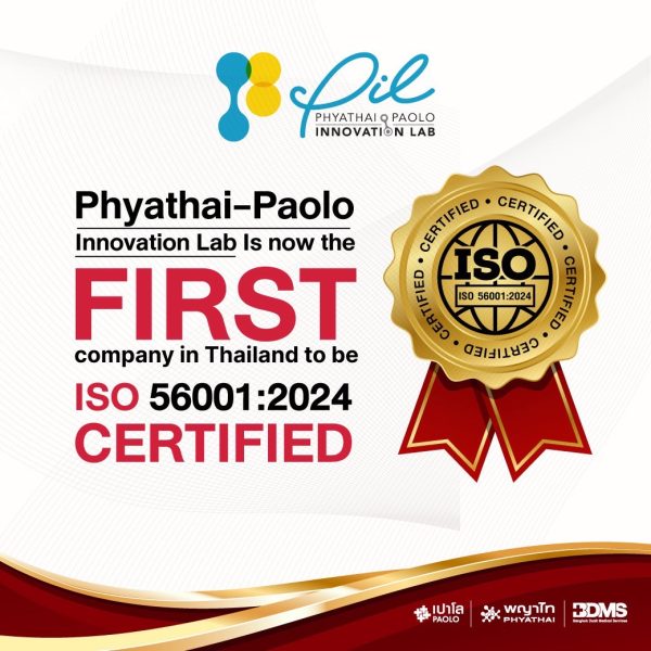 เครือโรงพยาบาลพญาไท–เปาโล นำโดย Phyathai–Paolo Innovation Lab (PIL) สร้างประวัติศาสตร์ใหม่ให้กับวงการนวัตกรรมสุขภาพไทย ด้วยการได้รับการรับรองมาตรฐานสากล ISO 56001:2024 ด้านระบบการจัดการนวัตกรรม (Innovation Management System) เป็นองค์กรแรกของประเทศไทย