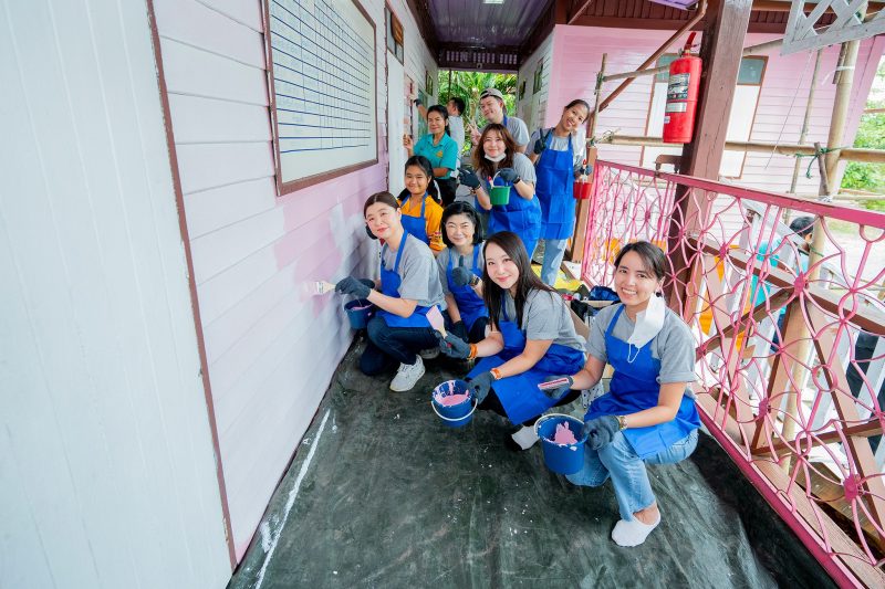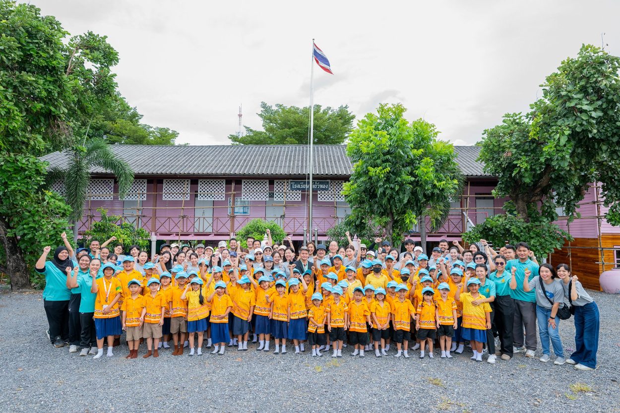 นางสาวเพียงจิต ศรีประสาธน์ รองประธานอาวุโสฝ่ายทรัพยากรบุคคลและบรรษัทสัมพันธ์ ประเทศไทยและอินโดไชน่า บริษัท ซันโทรี่ เบเวอเรจ แอนด์ ฟู้ด (ประเทศไทย) จำกัด กล่าวเพิ่มเติมเกี่ยวกับกิจกรรมในปีนี้ว่า “การจัดกิจกรรม      ‘One Suntory Helping Hands’ ถือเป็นอีกหนึ่งความสำเร็จจากการร่วมแรงร่วมใจกันของทั้งสองบริษัทในเครือซันโทรี่ ภายใต้วัฒนธรรมองค์กรที่ยึดมั่นในแนวคิด ‘Better Together’ ซึ่งตอกย้ำว่าทุกความร่วมมือ ไม่ว่าจะเล็กหรือใหญ่ ล้วนมีคุณค่าและสามารถขับเคลื่อนการเปลี่ยนแปลงในเชิงบวกให้เกิดขึ้นได้จริง สำหรับโรงเรียนวัดถั่วทองนั้น นอกจากการทาสีปรับปรุงอาคารเรียนแล้ว พนักงานจิตอาสาของเรายังร่วมกันปรับปรุงแปลงผักสวนครัวของโรงเรียน เพื่อให้น้อง ๆ ได้มีพื้นที่เรียนรู้ด้านการเกษตร และสามารถนำผักปลอดสารพิษที่ปลูกได้ไปประกอบอาหารกลางวัน ช่วยลดค่าใช้จ่ายด้านวัตถุดิบ      ซึ่งโรงเรียนสามารถนำงบประมาณส่วนนี้ไปพัฒนาในด้านอื่น ๆ ต่อไป นอกจากนั้น เรายังได้จัดกิจกรรมสันทนาการที่เต็มไปด้วยความสนุกสนาน ควบคู่ไปกับการให้ความรู้เรื่องการคัดแยกขยะอย่างถูกต้อง เพื่อปลูกจิตสำนึกด้านการอนุรักษ์สิ่งแวดล้อมให้แก่เยาวชน ซึ่งไม่เพียงสร้างประโยชน์ให้กับสังคมเท่านั้น แต่ยังช่วยเสริมสร้างความผูกพันและความภาคภูมิใจของพนักงาน (Employee Engagement) ในการเป็นส่วนหนึ่งขององค์กรที่ใส่ใจต่อผู้คนและสิ่งแวดล้อม โดยสอดคล้องกับอีกหนึ่งค่านิยมองค์กรของเรา คือ ‘การเติบโตอย่างยั่งยืน’ (Growing for Good) ที่มุ่งมั่นสร้างการเปลี่ยนแปลงเชิงบวกให้กับสังคมและสิ่งแวดล้อม ควบคู่ไปกับการเติบโตขององค์กร”