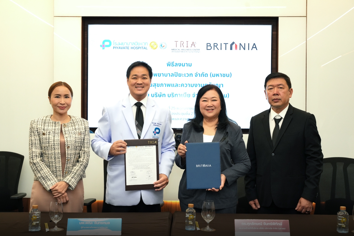 ดร.ศุภลักษณ์ จันทร์พิทักษ์ ประธานเจ้าหน้าที่บริหาร และนายนาวิน เล็กนาวา กรรมการผู้จัดการฝ่ายพัฒนาโครงการ บริษัท บริทาเนีย จำกัด (มหาชน) หรือ BRI ได้ร่วมลงนามความร่วมมือกับสองผู้นำด้านสุขภาพ ได้แก่ โรงพยาบาลปิยะเวท และสถาบันสุขภาพและความงามตรัยญา เพื่อมอบบริการดูแลสุขภาพและที่ปรึกษาทางการแพทย์อย่างครบวงจรให้กับลูกบ้านบริทาเนีย อำนวยความสะดวกให้ทุกคนสามารถเข้าถึงบริการด้านสุขภาพที่มีคุณภาพได้ง่ายขึ้น ปลอดภัยยิ่งขึ้น และครอบคลุมในทุกขั้นตอนของการดูแล