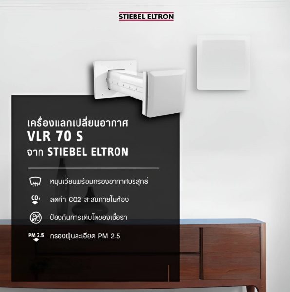 ในฐานะผู้นำโซลูชันเพื่อคุณภาพชีวิต สตีเบล เอลทรอน ได้นำเสนอ “เครื่องแลกเปลี่ยนอากาศรุ่น VLR 70 S” ที่ออกแบบมาเพื่อยกระดับคุณภาพอากาศตามมาตรฐานอาคารสีเขียว โดยการดูดอากาศอับชื้นและมีปริมาณคาร์บอนไดออกไซด์สูงออกจากห้อง พร้อมดึงอากาศจากภายนอกอาคารที่มีออกซิเจนสูงเข้ามาเติมเต็มในห้อง ช่วยให้อากาศปลอดโปร่งและสดชื่นโดยไม่ต้องเปิดหน้าต่าง อีกทั้งยังสามารถกรองมลภาวะ ฝุ่น และสารก่อภูมิแพ้ในอากาศได้ถึง 95% นอกจากนี้ยังใช้พลังงานไฟฟ้าเพียงเล็กน้อย และมีระบบปรับอุณหภูมิอากาศจากภายนอกให้เย็นลงเพื่อช่วยลดภาระการใช้งานเครื่องปรับอากาศด้วยฮีตเอ็กเชนเจอร์ (Heat Exchanger) สำหรับตัวเครื่องผลิตจากวัสดุคุณภาพสูง ดีไซน์สีขาวแบบมินิมอล ทำงานโดยมีเสียงรบกวนต่ำ และติดตั้งได้โดยไม่ต้องเดินท่ออากาศภายในอาคาร จึงเหมาะกับอาคารทุกประเภท ทั้งสำนักงาน อาคารพาณิชย์ บ้าน และคอนโดมิเนียม ที่มุ่งสู่การเป็นอาคารสีเขียวอย่างครบวงจร