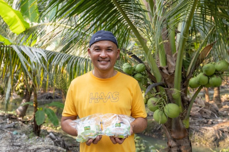ทุกขั้นตอนถูกควบคุมคุณภาพอย่างละเอียด โดยมะพร้าวที่ผ่านการคัดเลือกต้องมีขนาดเส้นผ่าศูนย์กลางลูก เฉลี่ย 10 ซม. ตามสเปกที่กำหนด ก่อนส่งต่อเข้าสู่กระบวนการผลิตของโรงแพ็กโคโค่ เฟรส เพื่อแปรรูปเป็นมะพร้าวพร้อมทานสำหรับวางจำหน่ายในร้านเซเว่น อีเลฟเว่น กระบวนการนี้ไม่เพียงยกระดับคุณภาพสินค้า แต่ยังเป็นการ สร้างงาน สร้างอาชีพที่มั่นคงให้คนในชุมชนอย่างเป็นรูปธรรม