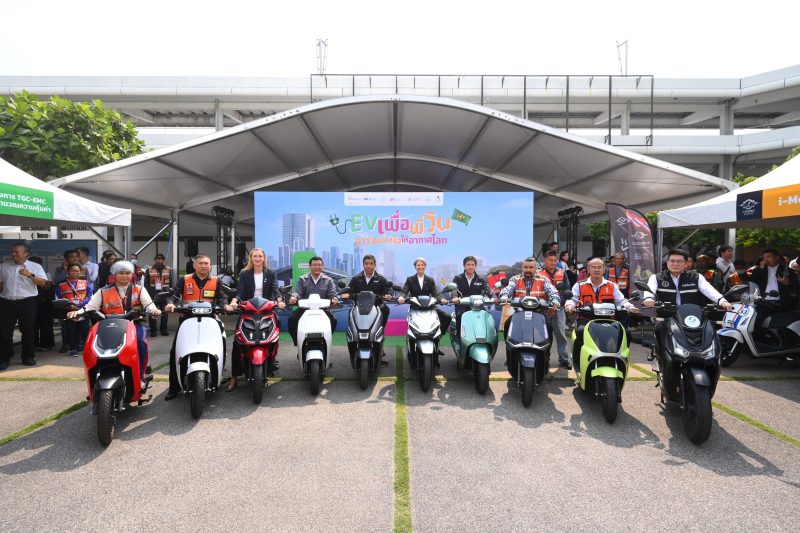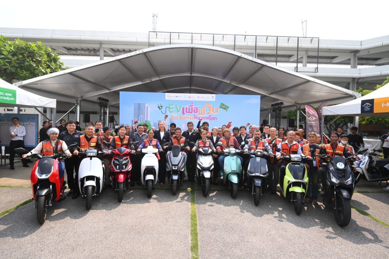 โครงการ “EV เพื่อพี่วิน” โดยกรุงเทพมหานครและ GIZ ร่วมกับมหาวิทยาลัยเทคโนโลยีพระจอมเกล้าธนบุรี และสมาคมยานยนต์ไฟฟ้าไทย (EVAT) ภายใต้โครงการ TGC EMC มุ่งเดินหน้าแก้ข้อจำกัดเชิงโครงสร้างเพื่อสนับสนุนให้ผู้ประกอบการวินมอเตอร์ไซค์หันมาใช้ยานยนต์ไฟฟ้า ผ่านการทดลองโมเดลเช่าขับในอัตรา 75-140 บาทต่อวัน ควบคู่กับการจัดเตรียมระบบอัดประจุทั้งแบบชาร์จและสลับแบตเตอรี่ที่ไม่ต้องรอชาร์จ พร้อมเปิดโอกาสให้ผู้ขับขี่วินมอเตอร์ไซค์และพนักงานกวาดถนนของ กทม. กว่า 200 คนในเขตดินแดงและพญาไท ร่วมทดลองขับและรับข้อมูลด้านต้นทุน การดูแลรักษา และระบบสนับสนุนที่จำเป็นต่อการทำงานจริง ก่อนคัดเลือก 30 คนให้ทดลองใช้งานต่อเนื่องเป็นเวลา 1 เดือนโดยไม่เสียค่าใช้จ่าย เพื่อเก็บข้อมูลเชิงลึกสำหรับการพัฒนาแนวทางขยายผลในระดับเมือง