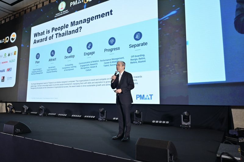 ในส่วนของ Thailand People Management Award 2025 ซึ่งเป็นรางวัลหลักด้านการบริหารทรัพยากรมนุษย์ ได้ยกย่ององค์กรที่แสดงให้เห็นถึงความเป็นเลิศในการวาง People Strategy เชื่อมโยงสู่ผลลัพธ์ทางธุรกิจ และขับเคลื่อนองค์กรภายใต้กรอบ People–Performance–Planet อย่างเป็นรูปธรรม โดยในพิธีมอบรางวัลครั้งนี้ คุณสุดคนึง ขัมภรัตน์ นายกสมาคมการจัดการงานบุคคลแห่งประเทศไทย (President, PMAT) ให้เกียรติเป็นผู้มอบรางวัลแก่ผู้แทนองค์กรที่ได้รับการประกาศเกียรติคุณ