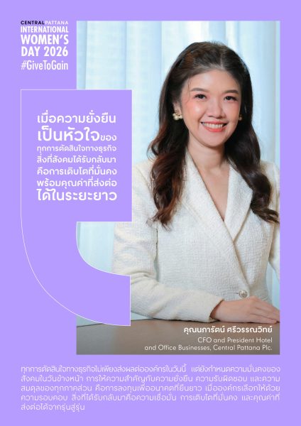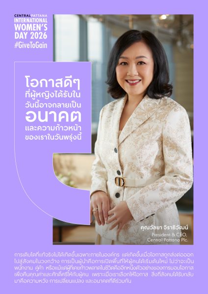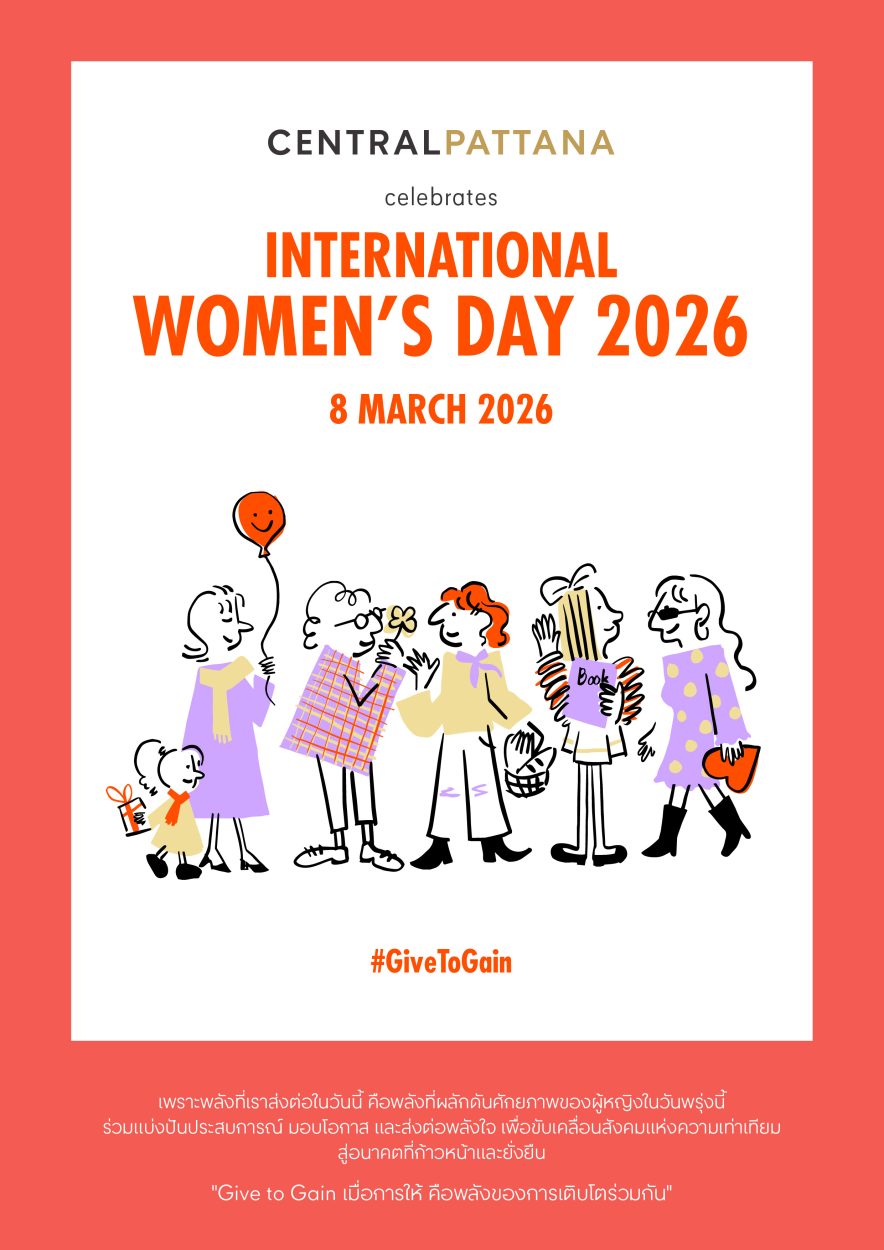 บริษัท เซ็นทรัลพัฒนา จำกัด (มหาชน) เดินหน้าขับเคลื่อนความเท่าเทียมอย่างเป็นรูปธรรม ในฐานะ The Pioneer of Equality ที่สร้างสรรค์พื้นที่แห่งโอกาสอย่างต่อเนื่องและหลากหลายรูปแบบ ร่วมสร้างมูฟเมนต์สำคัญในวันสตรีสากลโลก 2026 (International Women’s Day 2026) ซึ่งจัดขึ้นทุกวันที่ 8 มีนาคมของทุกปี โดยปีนี้สร้างสรรค์แคมเปญสอดคล้องธีมสากล ‘Give To Gain’ เมื่อการให้ คือพลังของการเติบโตร่วมกัน