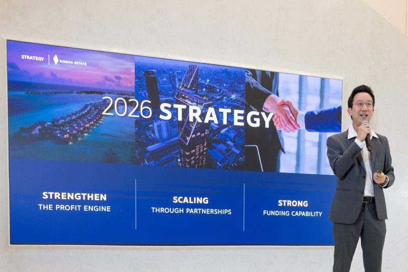 บริษัท สิงห์ เอสเตท จำกัด (มหาชน) หรือ S ผู้พัฒนาและลงทุนในอสังหาริมทรัพย์ระดับสากล ประกาศแผนธุรกิจปี 2569 “STRONG FOUNDATION, SCALING THE FUTURE ชูรากฐาน 4 ธุรกิจแกร่ง ขับเคลื่อนการเติบโตอย่างยั่งยืน เดินหน้าเสริมฐานกำไรจากธุรกิจรายได้ประจำ ขยายการเติบโตผ่านพันธมิตรเชิงกลยุทธ์ และรักษาวินัยทางการเงิน เตรียมพัฒนาและรีแบรนด์สินทรัพย์เดิมเพื่อยกระดับมูลค่า ตั้งเป้ารักษาสัดส่วนรายได้ประจำ 70% ของพอร์ต หนุนรายได้รวมทั้งปีทะลุ 14,000 ล้านบาท มุ่งสร้างฐานกำไรเชิงคุณภาพ
