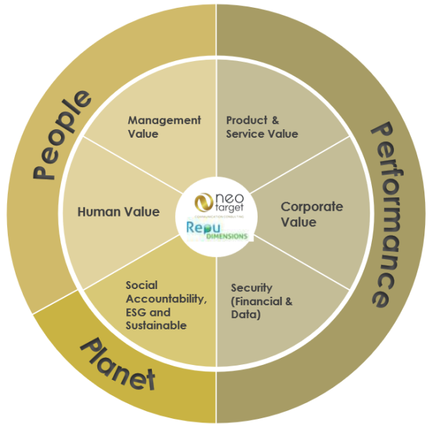 บริษัท นิโอ ทาร์เก็ต ได้พัฒนาแนวคิดการบริหารคอนเทนต์เชิงกลยุทธ์ผ่านเครื่องมือ Reputation Dimensions Management เพื่อช่วยองค์กรวางแผนการสื่อสารอย่างเป็นระบบ ครอบคลุมองค์ประกอบสำคัญของชื่อเสียงแบรนด์ ได้แก่ Brand Trust ความน่าเชื่อถือของแบรนด์, Integrity ความซื่อสัตย์ขององค์กร, Transparency ความโปร่งใสในการดำเนินธุรกิจ, Brand Contribution การสร้างคุณค่าให้สังคม และ Brand Connection ความสัมพันธ์กับผู้บริโภค เพื่อเสริมสร้างชื่อเสียงองค์กรอย่างสมดุลและยั่งยืน
