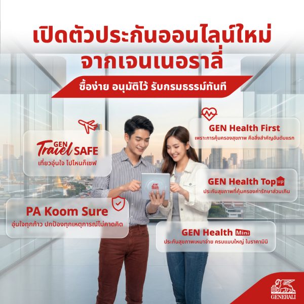 เจนเนอราลี่ ไทยแลนด์ เดินหน้าเสริมพอร์ตความแข็งแกร่งธุรกิจ เปิดตัวผลิตภัณฑ์ใหม่บุกตลาดประกันบนโลกออนไลน์ “Digital Insurance” โดยเฉพาะ เน้นการดีไซน์ผลิตภัณฑ์ที่หลากหลายตอบโจทย์ผู้บริโภคยุคดิจิทัลอย่างแท้จริง ชูความความสะดวก รวดเร็ว โปร่งใส และสามารถจัดการทุกขั้นตอนด้วยตนเองผ่านแพลตฟอร์มออนไลน์ ตั้งแต่การเลือกแบบประกัน เลือกความคุ้มครองที่เหมาะสมกับตนเอง ชำระเงิน ไปจนถึงการรับกรมธรรม์และการบริการหลังการขายแบบครบวงจร