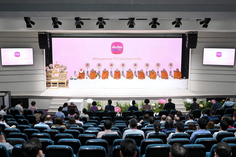บริษัท เมืองไทยประกันชีวิต จำกัด (มหาชน) จัดพิธีทำบุญครบรอบ 75 ปีการก่อตั้งบริษัทฯ เพื่อความเป็นสิริมงคล ในการนี้ได้นิมนต์คณะสงฆ์รวม 9 รูป จากวัดมหาธาตุยุวราชรังสฤษฎิ์ราชวรมหาวิหาร ทำพิธีเจริญพระพุทธมนต์ พร้อมจัดพิธีสักการะสิ่งศักดิ์สิทธิ์ประจำบริษัทฯ โดยมี นายโพธิพงษ์ ล่ำซำ ประธานกรรมการ นางยุพา ล่ำซำ นายสาระ ล่ำซำ ประธานเจ้าหน้าที่บริหาร ดร.สุธี โมกขะเวส กรรมการผู้จัดการ นายภูมิชาย ล่ำซำ ที่ปรึกษาประธานเจ้าหน้าที่บริหาร พร้อมด้วยคณะผู้บริหาร และพนักงาน ร่วมในพิธี งานจัดขึ้น ณ เมืองไทยประกันชีวิต สำนักงานใหญ่