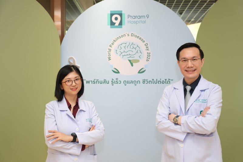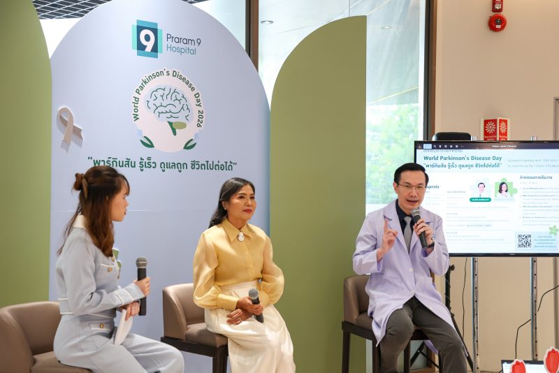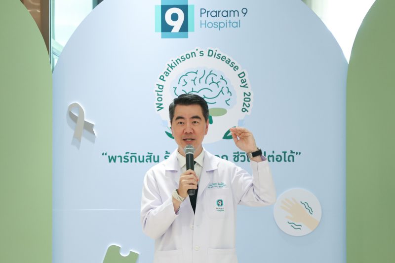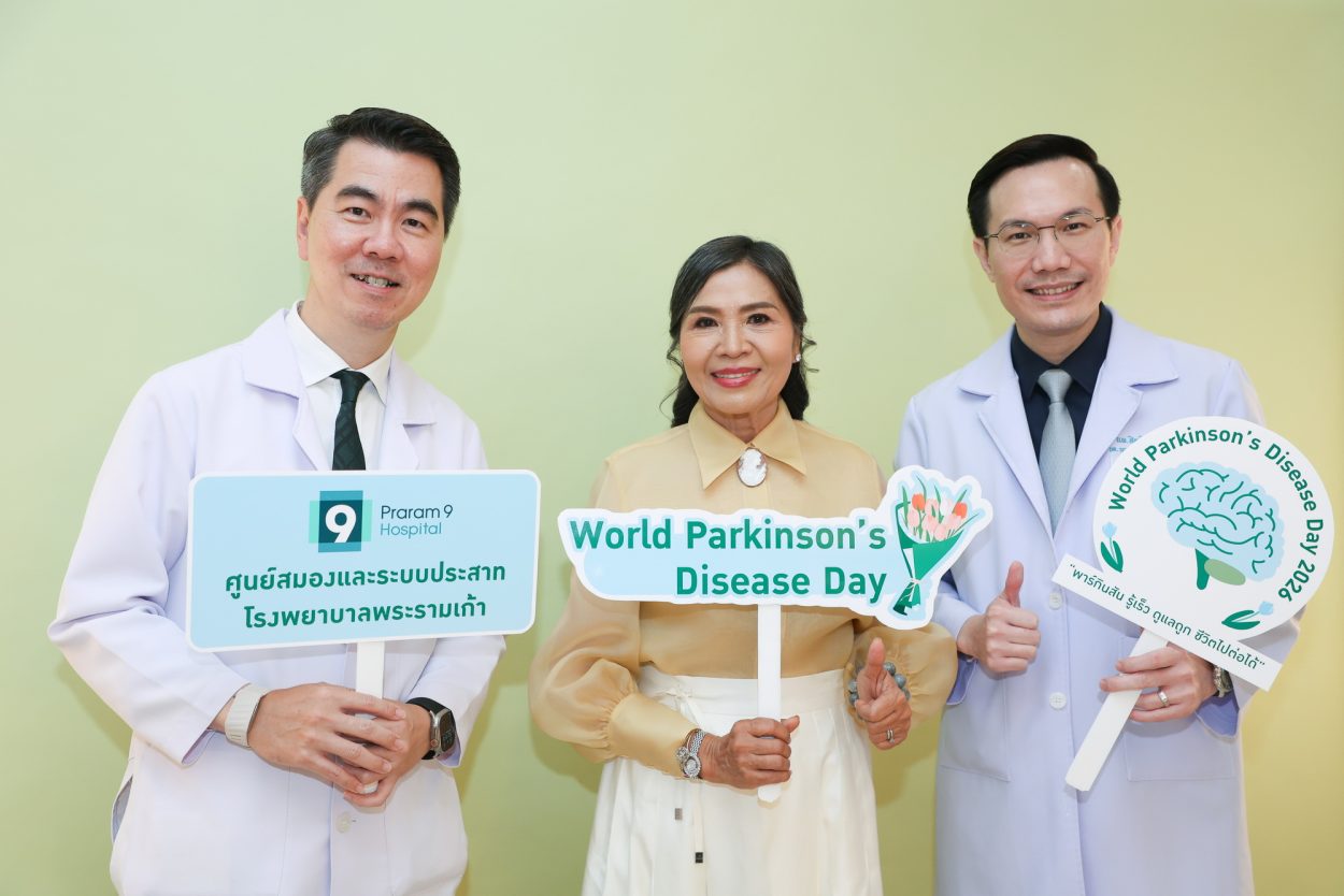 เพื่อสร้างการตระหนักรู้เกี่ยวกับโรคพาร์กินสัน ศูนย์สมองและระบบประสาท โรงพยาบาลพระรามเก้า จึงได้จัดกิจกรรม World Parkinson’s Disease Day 2026 “พาร์กินสัน รู้เร็ว ดูแลถูก ชีวิตไปต่อได้”         เนื่องในวันพาร์กินสันโลก เพื่อให้ความรู้เกี่ยวกับโรคพาร์กินสัน สัญญาณเตือนระยะเริ่มต้น และแนวทางดูแลผู้ป่วยอย่างถูกต้อง โดยมีแพทย์ผู้เชี่ยวชาญร่วมเสวนาในหัวข้อ “พาร์กินสัน อาการเริ่มต้นที่ไม่ควรมองข้าม พร้อมเทคนิคดูแลผู้ป่วยพาร์กินสันที่บ้าน” นำโดย นพ.สิทธิ เพชรรัชตะชาติ แพทย์ผู้ชำนาญการด้านสมองและระบบประสาท และ พญ.ปิยะวรรณ งามองอาจ แพทย์ผู้ชำนาญการด้านเวชศาสตร์ฟื้นฟู พร้อมแขกรับเชิญพิเศษ “แม่แก้ว” คุณณราวดี คูกิมิยะ โดยบรรยากาศภายในงานได้รับความสนใจและมีผู้เข้าร่วมอย่างคับคั่ง