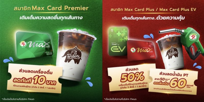 สมาชิกบัตร Premier รับส่วนลด 10 บาท สำหรับเครื่องดื่ม (ร้อน/เย็น) จำกัด 2 สิทธิ์ต่อสมาชิก เพียงแสดงหรือสแกนบัตรสมาชิกผ่านแอปพลิเคชัน Max Me เพื่อรับสิทธิ์ที่ร้านกาแฟพันธุ์ไทยที่ร่วมรายการ (ระยะเวลา 10 19 เมษายน 2569)