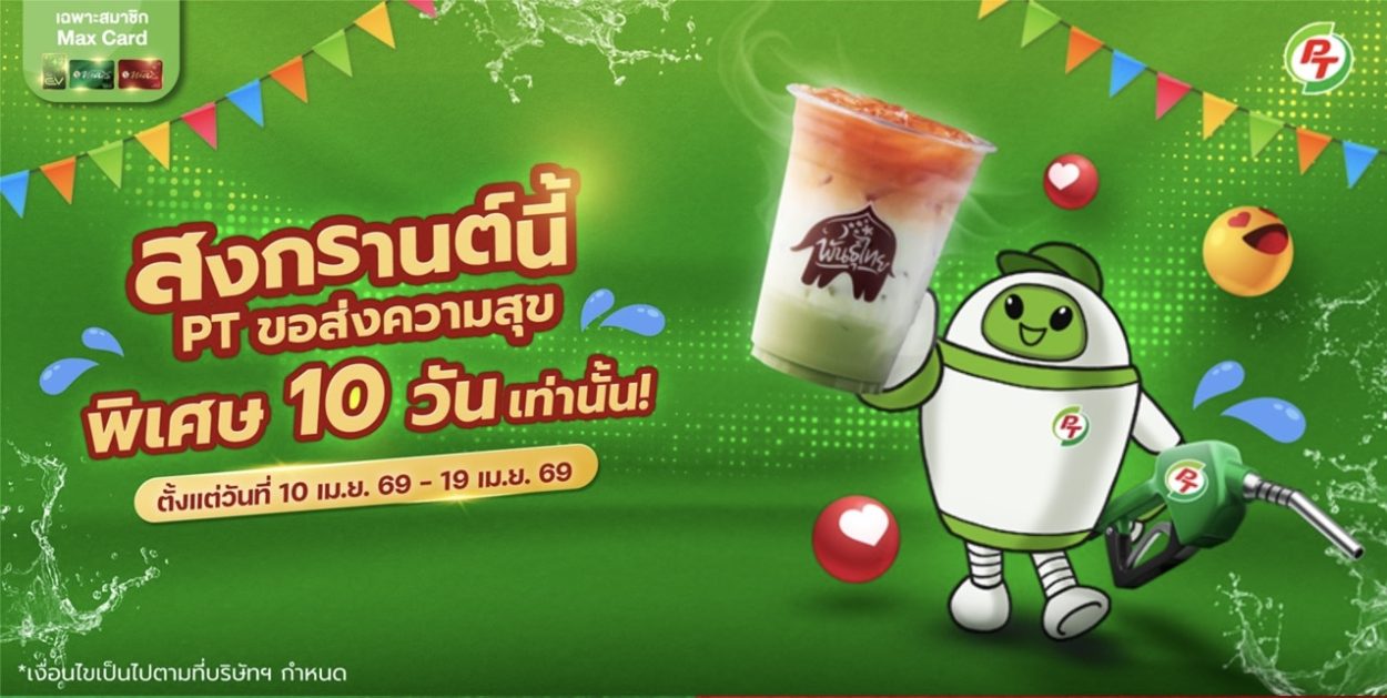 พีที ส่งแคมเปญ “สงกรานต์นี้ พีที ขอส่งความสุข 10 วัน” มอบสิทธิพิเศษสมาชิก Max Card เติมเต็มความคุ้มค่าทุกเส้นทาง