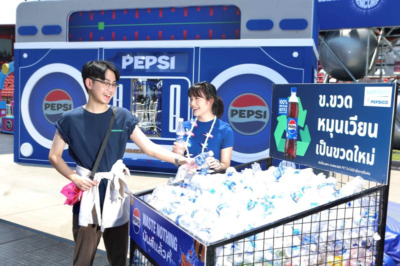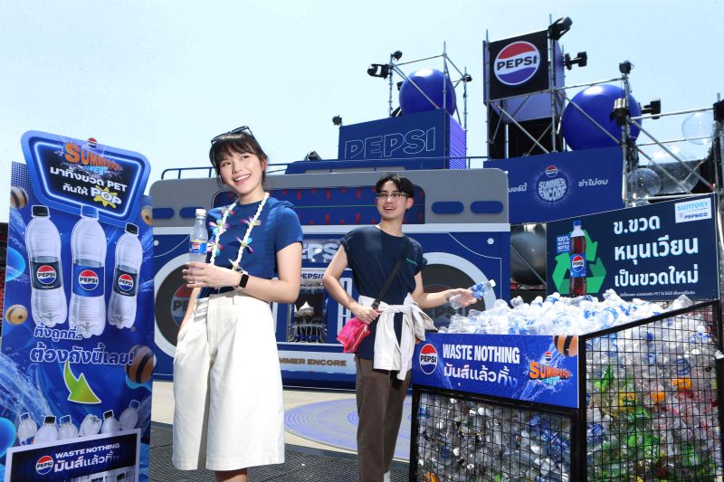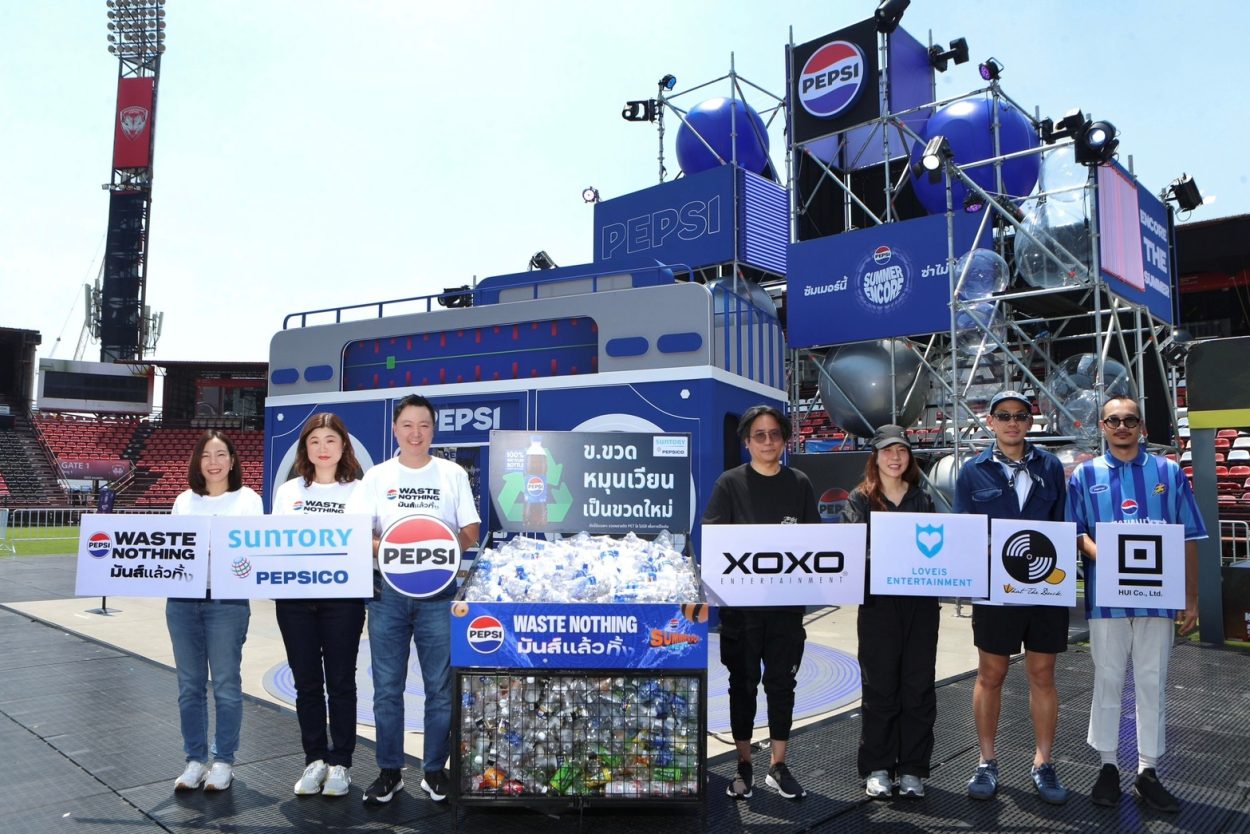 ซัมเมอร์นี้ความมันส์ต้องมาคู่กับการรักษ์โลก! บริษัท ซันโทรี่ เป๊ปซี่โค เบเวอเรจ (ประเทศไทย) จำกัด ผนึกกำลัง 3 ค่ายเพลงยักษ์ใหญ่ของไทย ได้แก่ เอ็กซ์โอเอ็กซ์โอเอนเตอร์เทนเมนต์ เลิฟอิส เอ็นเตอร์เทนเม้นท์ วอท เดอะ ดัก และ หุย ดีไซน์ นักออกแบบคอนเสิร์ตชื่อดัง เปิดโอกาสให้คนรักเสียงเพลงทุกเจเนอเรชันปลดปล่อยพลังความสนุกแบบจัดเต็ม พร้อมใส่ใจสิ่งแวดล้อมผ่านแคมเปญ “Waste Nothing – มันส์ แล้ว ทิ้ง” ในงาน PEPSI presents SUMMERPOP – ALL WET ภายใต้แนวคิด สนุกอย่างรับผิดชอบ ทิ้งให้ถูกที่ แยกให้ถูกถัง โดยมีการจัดตั้งถังคัดแยกขวดพลาสติก PET 10 จุดทั่วพื้นที่จัดงาน ณ ธันเดอร์โดม สเตเดียม ในช่วงสงกรานต์ที่ผ่านมา และหลังจบงานสามารถรวบรวมขวดพลาสติก PET ใช้แล้วได้มากถึง 115.2 กิโลกรัม เพื่อนำกลับเข้าสู่กระบวนการรีไซเคิลหมุนเวียนกลับมาผลิตเป็นขวดใหม่ต่อไป
