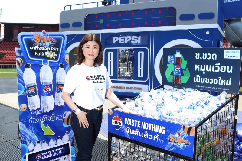 นางสาววิภาวรรณ ทัศนปรีชาชัย รองประธานบริหารฝ่ายบรรษัทสัมพันธ์ บริษัท ซันโทรี่ เป๊ปซี่โค เบเวอเรจ (ประเทศไทย) จำกัด กล่าวเสริมว่า “ซันโทรี่ เป๊ปซี่โค ประเทศไทย มีแนวคิดว่าบรรจุภัณฑ์ใช้แล้วไม่ควรถูกทิ้งเป็นขยะ แต่ควรเป็นทรัพยากรที่สามารถหมุนเวียนกลับมาใช้ใหม่ได้ เราจึงส่งเสริมการจัดการบรรจุภัณฑ์อย่างยั่งยืน โดยขับเคลื่อนแคมเปญ ‘Waste Nothing – มันส์ แล้ว ทิ้ง’ อย่างต่อเนื่อง ผ่านเทศกาลดนตรีและกิจกรรมที่แบรนด์เป๊ปซี่สนับสนุน (Event-Based Packaging Sustainability) เพื่อเปิดโอกาสให้ผู้บริโภคมีส่วนร่วมในการคัดแยกขยะด้วยตนเองและส่งต่อบรรจุภัณฑ์ใช้แล้วกลับเข้าสู่กระบวนการรีไซเคิล โดยเฉพาะขวด PET ใสไม่มีสี ที่สามารถเข้าสู่กระบวนการ ‘Bottle-to-Bottle Recycling’ เพื่อกลับมาผลิตเป็นขวดใหม่ได้อีกครั้ง แนวทางนี้ไม่เพียงช่วยลดการใช้ทรัพยากรใหม่และลดปริมาณขยะสู่หลุมฝังกลบ แต่ยังเป็นส่วนหนึ่งของการขับเคลื่อนเศรษฐกิจหมุนเวียนอย่างเป็นรูปธรรม ที่สะท้อนถึงความมุ่งมั่นของบริษัทฯ ในการเติบโตไปพร้อมกับการดูแลสังคมและสิ่งแวดล้อมตามค่านิยมองค์กร ‘การเติบโตอย่างยั่งยืน’ (Growing for Good)”