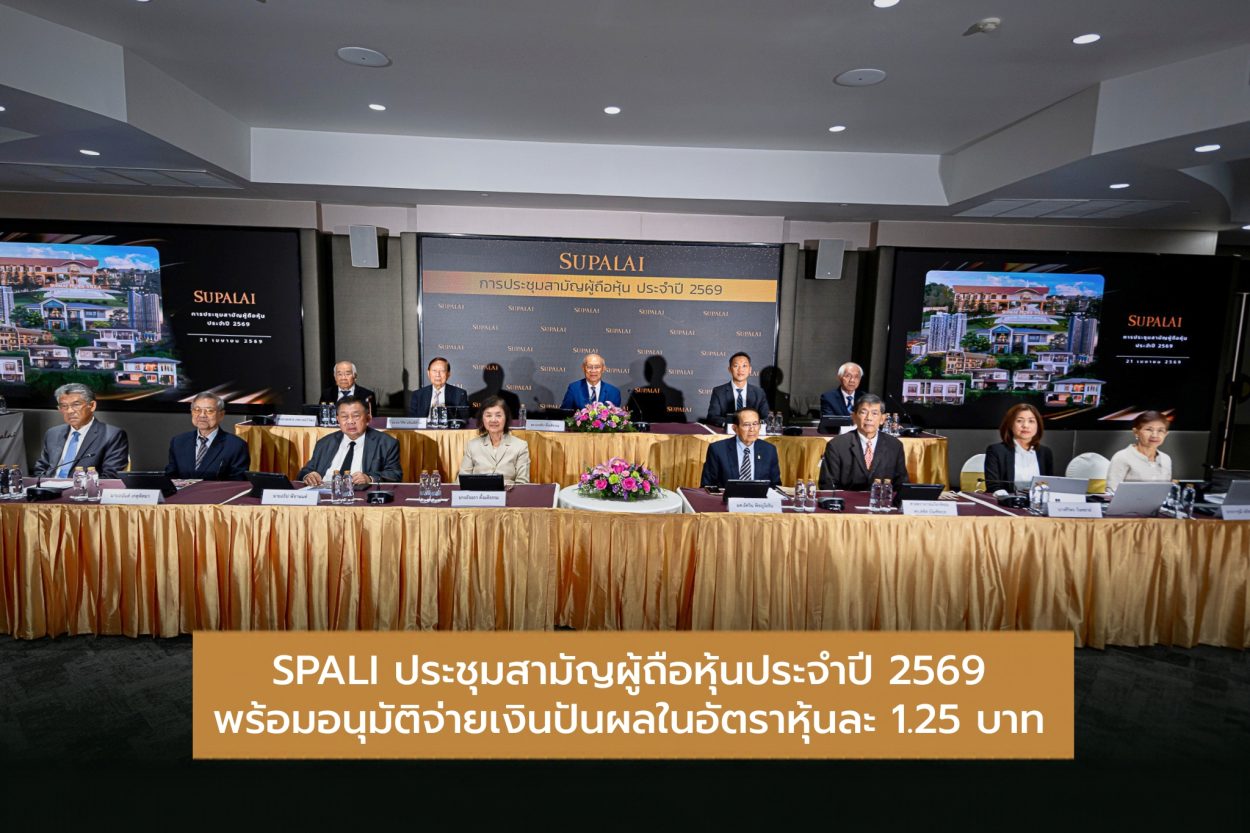 บริษัท ศุภาลัย จำกัด (มหาชน) โดย ดร.ประทีป ตั้งมติธรรม ประธานกรรมการบริหาร พร้อมด้วยคณะกรรมการบริษัท ร่วมประชุมสามัญผู้ถือหุ้นประจำปี 2569 เพื่อรายงานผลการดำเนินงานปี 2568 รวมถึงแผนการเติบโตของบริษัทปี 2569 ทั้งนี้ที่ประชุมสามัญผู้ถือหุ้นประจำปี 2569 ได้มีมติอนุมัติการจ่ายเงินปันผลสำหรับผลประกอบการงวดปี 2568 ให้แก่ผู้ถือหุ้น ในอัตราหุ้นละ 1.25 บาท จ่ายเงินปันผลระหว่างกาลไปแล้วในอัตราหุ้นละ 0.55 บาท คงเหลือจ่ายเงินปันผลสำหรับงวด 6 เดือนหลังของปี 2568 ในอัตราหุ้นละ 0.70 บาท โดยกำหนดรายชื่อผู้ถือหุ้นที่มีสิทธิในการรับเงินปันผล ประจำปี 2568 (Record Date) วันที่ 7 พฤษภาคม 2569 และจ่ายเงินปันผล ในวันที่ 19 พฤษภาคม 2569
