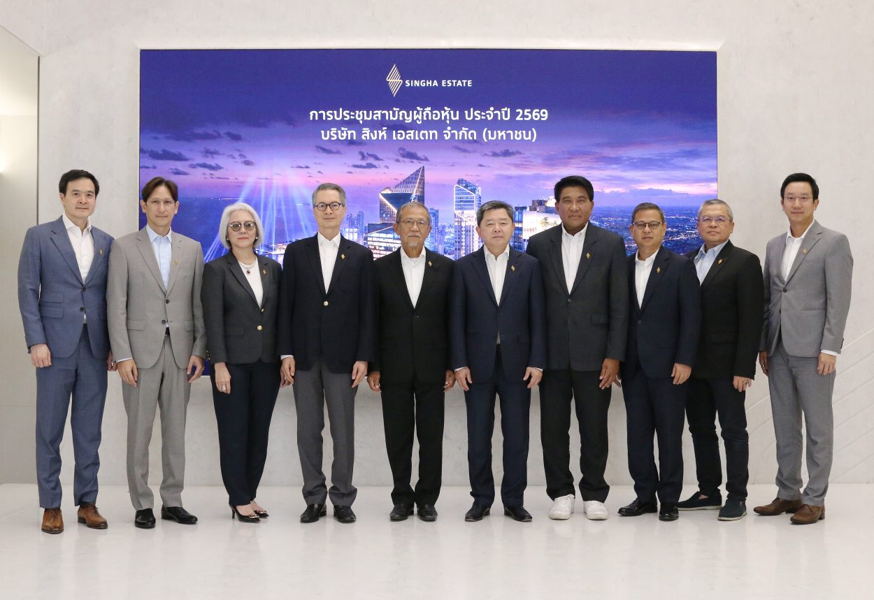 บริษัท สิงห์ เอสเตท จำกัด (มหาชน) หรือ S ผู้พัฒนาและลงทุนในอสังหาริมทรัพย์ระดับสากล นำโดย ปีติพงศ์ พึ่งบุญ ณ อยุธยา ประธานกรรมการบริษัทฯ, ดร.ชญานิน เทพาคำ ประธานกรรมการบริหาร และชัยรัตน์ ศิวะพรพันธ์ กรรมการและประธานเจ้าหน้าที่บริหาร พร้อมด้วยคณะกรรมการ จัดประชุมผู้ถือหุ้นประจำปี 2569 เพื่อรายงานผลการดำเนินงานในปี 2568 พร้อมนำเสนอกลยุทธ์ในการดำเนินธุรกิจในปี 2569 ซึ่งที่ประชุมผู้ถือหุ้นได้อนุมัติการจ่ายเงินปันผลประจำปี 2568 ในอัตราหุ้นละ 0.015 บาทต่อหุ้น คิดเป็นอัตราการจ่ายเงินปันผลที่ร้อยละ 41.81 ของกำไรสุทธิหลังจากการปรับปรุงรายการ ทั้งนี้กำหนดรายชื่อผู้ถือหุ้นที่มีสิทธิในการรับเงินปันผลในวันจันทร์ที่ 16 มีนาคม 2569 ที่ผ่านมา และกำหนดจ่ายเงินปันผลในวันจันทร์ที่ 18 พฤษภาคม 2569